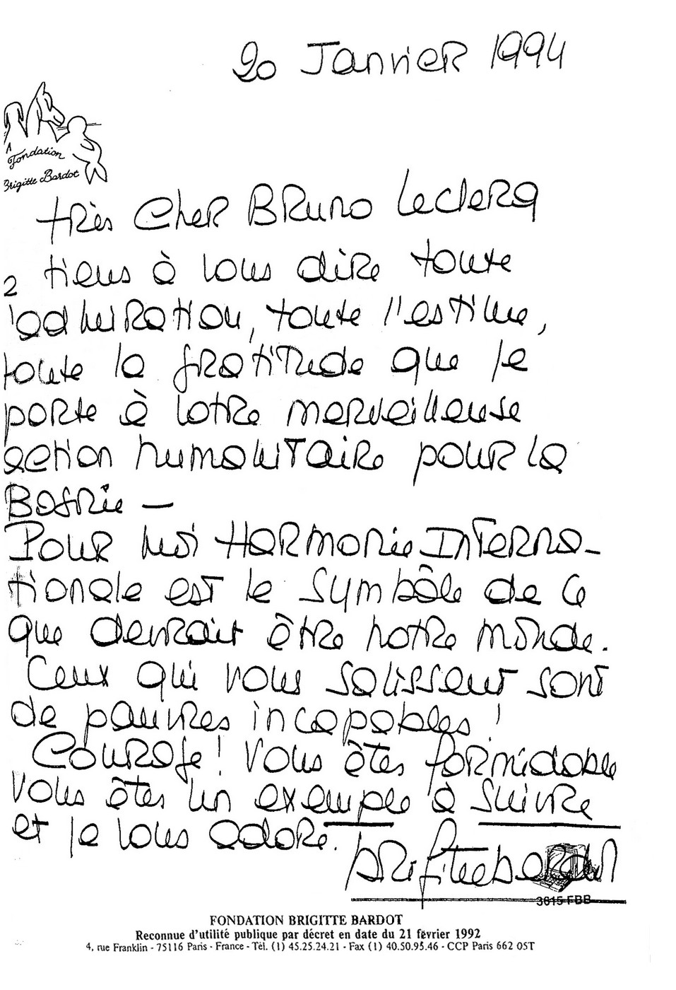 Plus tard, elle m’enverra une mer­veilleuse lettre d’encouragement pour l’action de mon asso­cia­tion envers la cause ani­male, suite à la cabale orga­ni­sée par les médias fran­çais qui a fait le tour du monde.